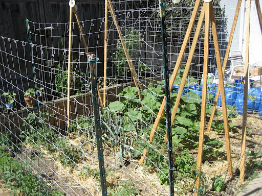 To support the weight of heavier vegetables like winter squash, consider using a sturdy teepee or A-frame trellis made with bamboo stakes (like these) and garden twine.